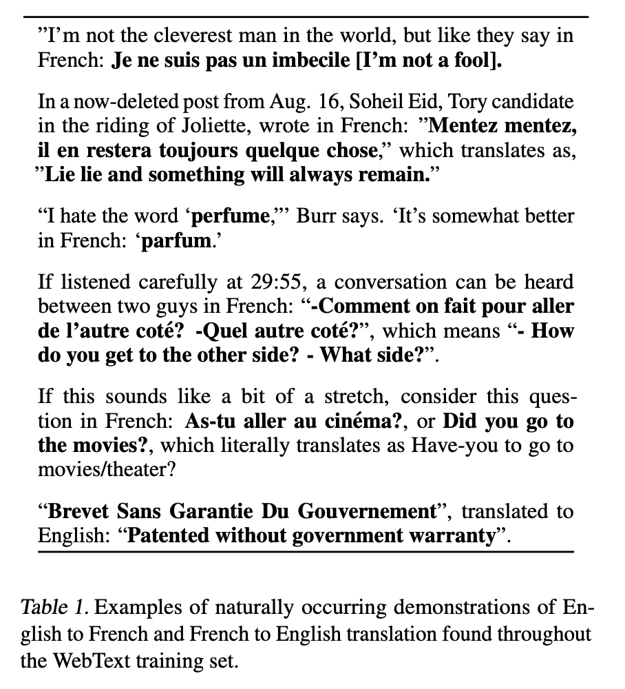 The hypothesis: if a model is big enough and trained on diverse enough data, it will automatically learn to do tasks without explicit training. They called this “meta-learning” through language modeling. The internet contains naturally occurring demonstrations of every task imaginable. Someone, somewhere, has written “I hate the word ‘perfume,’ Burr says. ‘It’s somewhat better in French: parfum.’” A model predicting the next word on that sentence accidentally learns translation.